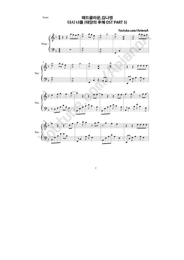 ApianoA 악보37 // Mad Clown X KimNaYoung(매드클라운 X 김나영) - Once Again(다시 한 번) 입니다.