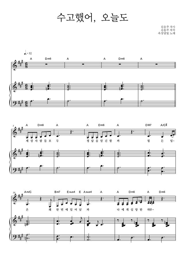 옥상달빛 - 수고했어, 오늘도 (피아노 3단)