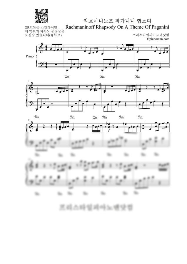 S. Rachmaninoff (라흐마니노프) - 파가니니 랩소디 (쉬운 악보) by 프리스타일피아노맨1