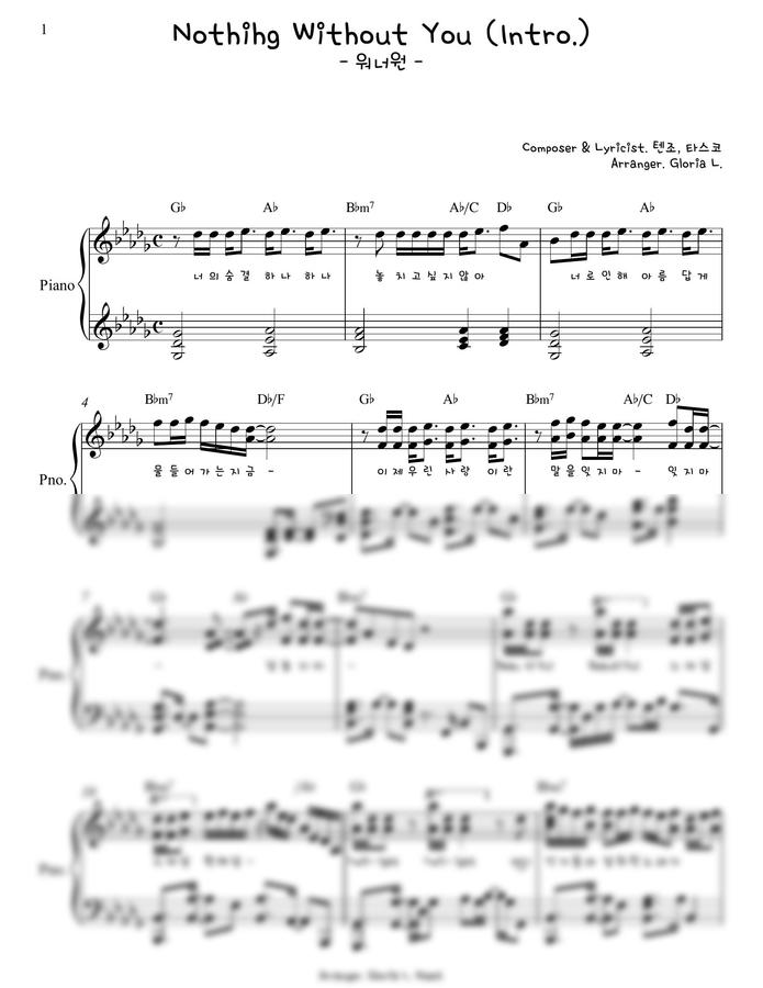이번 업로드 악보는 예전에 영상올렸던 워너원의 nothihg without you인데요..