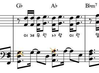 사실 이곡은 악보로 만들 예정이 없어서 자유롭게 연주하다보니 악보로 만들때 엇박이 많이 사용되었더라고요. 그래서 어려운부분을 표시 해드렸습니다. 연습하실때 16분음표단위로 쪼개서 연습하시면 어렵지 않게 하실 수 있습니다. 만약 그래도 어려우시다면 메일주소남겨주시면 빠르게 해결해드리도록 하겠습니다^^