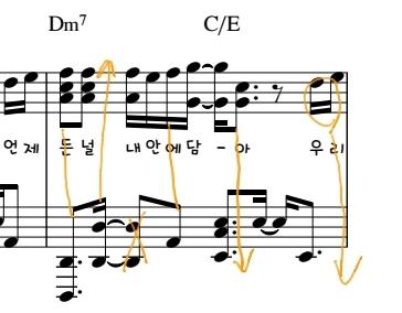 이렇게 중복되는 음이 동시에 나오면 위의 음을 과감히 버려도 됩니다.