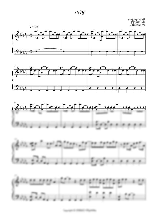 어쿠스틱 기타의 리듬을 왼손으로 표현해주었고, 멜로디와 피아노의 주된 선율은 오른손에서 표현해주었습니다.