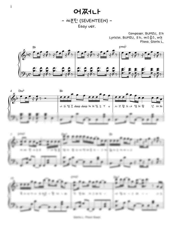 세븐틴 (Seventeen) - 어쩌나 (쉬운 악보) by 글로리아엘