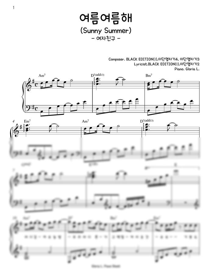 이번악보는 여자친구의 여름여름해 입니다.