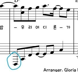 아르페지오 왼손 반주를 사용하다보니 베이스음들이 덧줄이 많아졌습니다. 주의해주세요~ 덧줄이 너무 보기 힘드시다면 위의 코드음이 베이스음이기 때문에 참고하시면 됩니다.