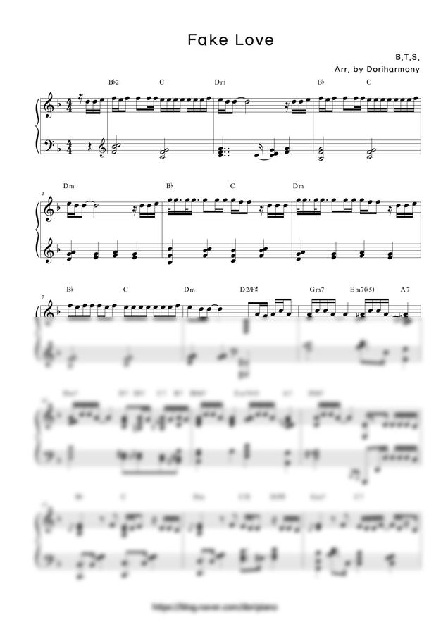 방탄 소년단(BTS) 'Fake love'를 재즈 버젼으로 편곡/연주한 악보입니다~