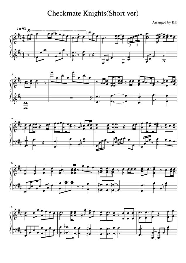 이번에는 드디어 이전에 신청을 받았던 앙상블 스타즈 유닛송인 checkmate knights 의 악보를 들고 왔습니다.