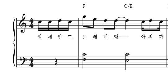 왼손은 2분음표와 4분음표 위주로 편곡하였습니다