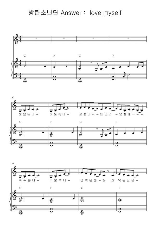 방탄소년단 (BTS) - Love Myself (C키, 피아노 3단) by 한규희