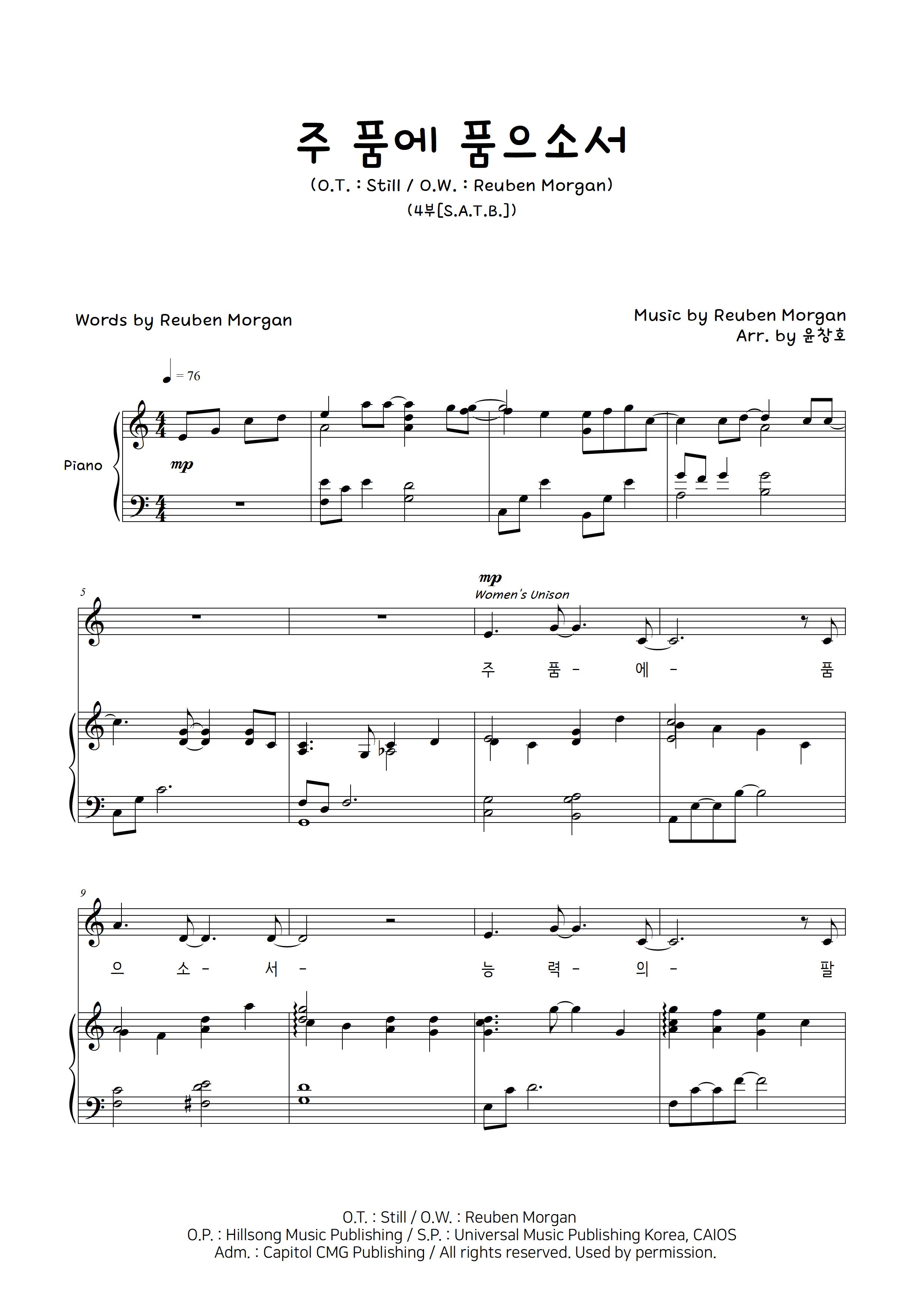 Reuben Morgan - 주 품에 품으소서 (피아노+4부) by 윤창호
