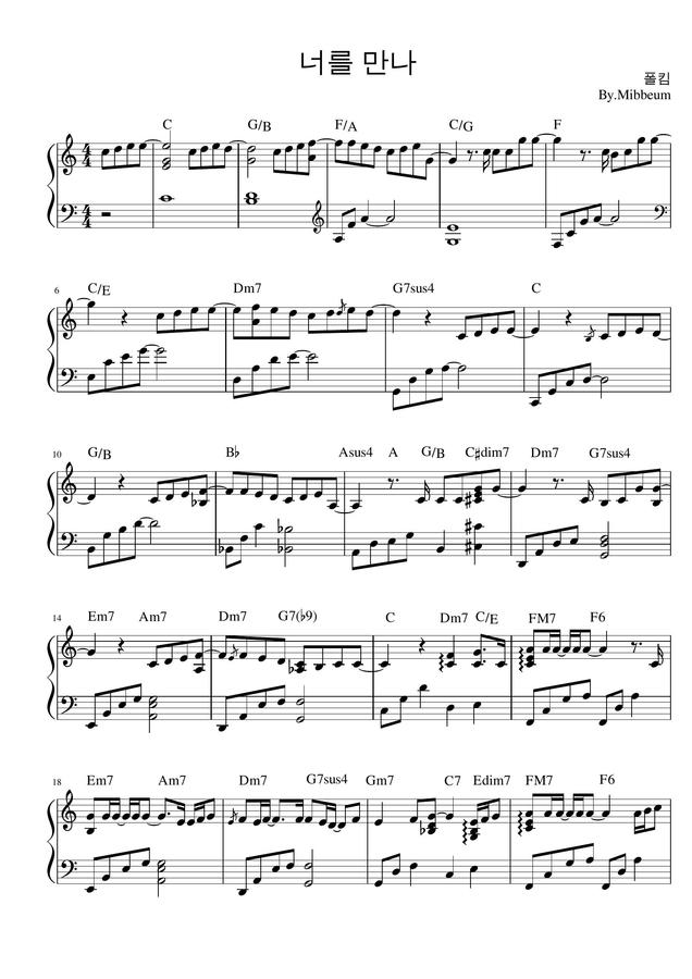 피아노 버전으로 간단하고 쉽게 편곡한 악보 가져와보았어요!