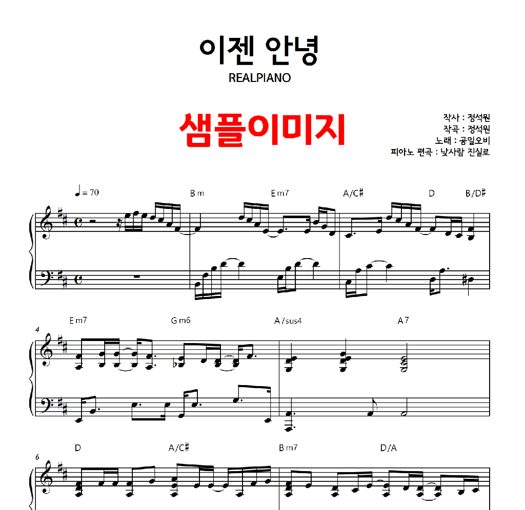 졸업식 곡의 대명사 [ 이젠 안녕 ] 피아노 악보입니다.