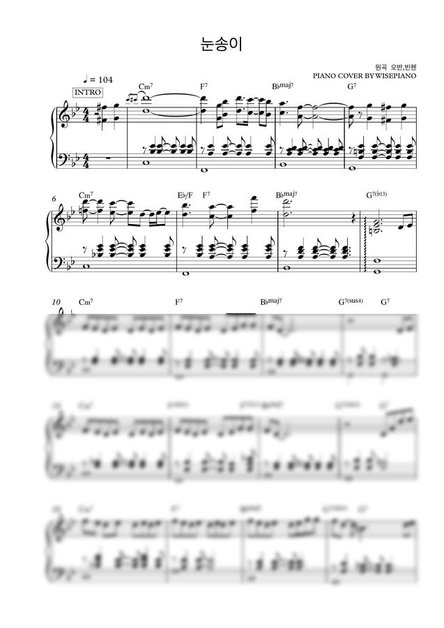 안녕하세요 유튜브에서 피아노커버로 활동중인 WISEPIANO입니다.2019.1.23일에 발매된 오반,빈첸 - 눈송이 라는곡을 피아노편곡해보았습니다.첫 업로드라 서툴지만 잘 부탁드립니다!유튜브NaverTV
