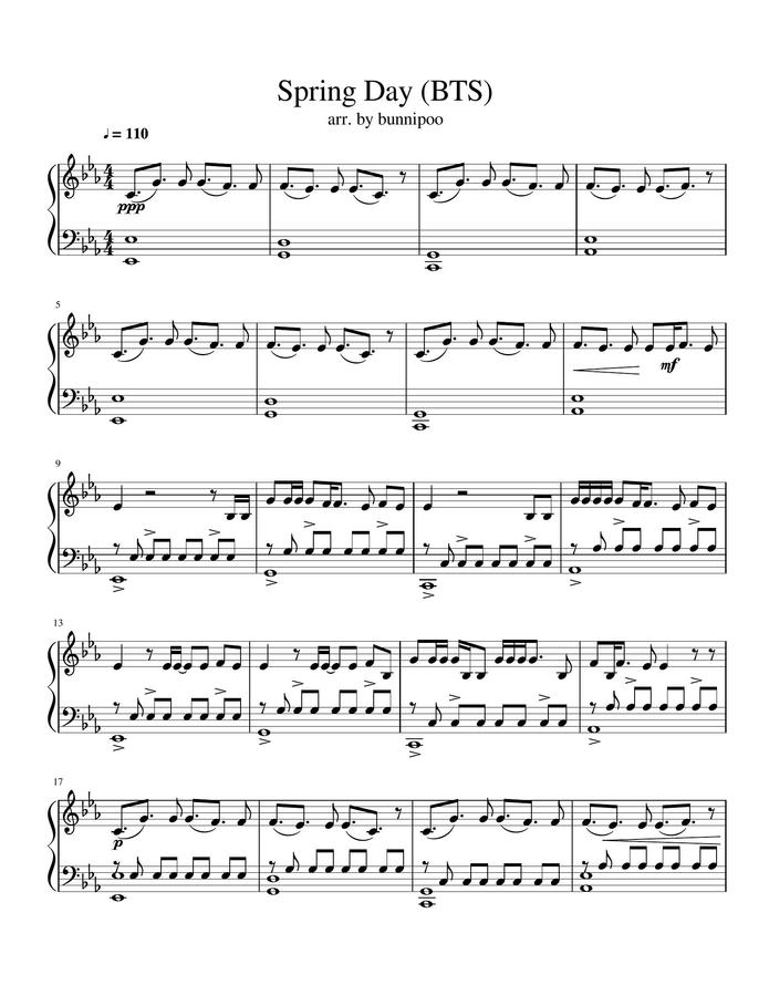 안녕하세요, 괴도 키드에요!!! 오늘은 방탄소년단의 봄날인데 검색해보니 많이 없더라고요... 그래서 이렇게 올려봐요 ㅎㅎ 제가 작곡한곡이 아니어서 이렇게 링크도 올립니다!!! 난이도가 매우 쉬움 보다 쉬워서 많이 다운받으세요!!! https://musescore.com/bunnipoo/spring_day_-_bts