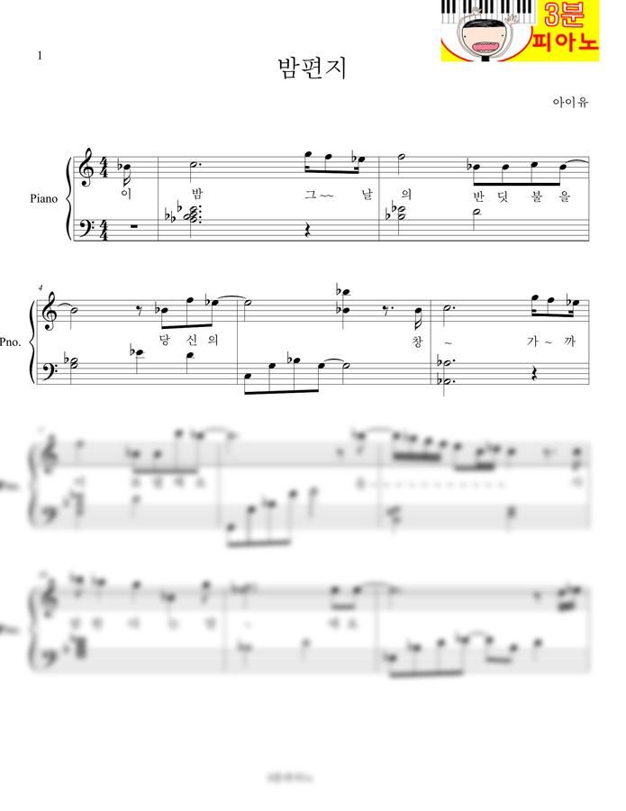 아이유 밤편지 피아노악보(1절만) 가 나왔습니다 !