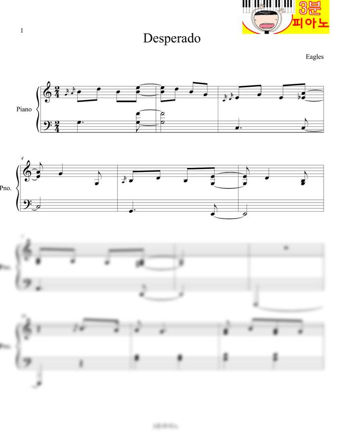 이글스의 데스페라도 역시 피아노 치기 쉽게 만들었는데요,