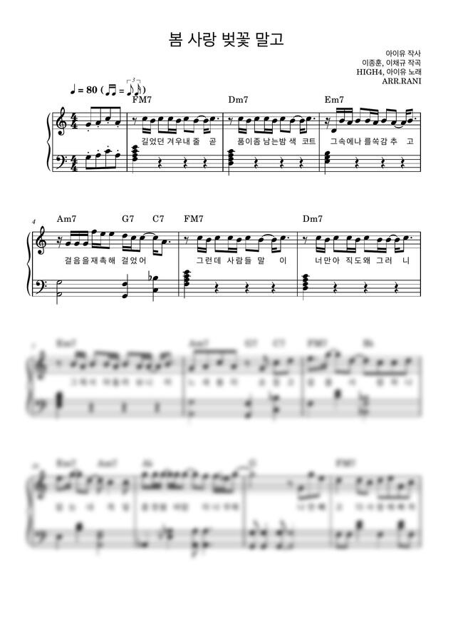 HIGH4 (하이포),아이유(IU) - 봄 사랑 벚꽃 말고 (다장조) by Rani Score