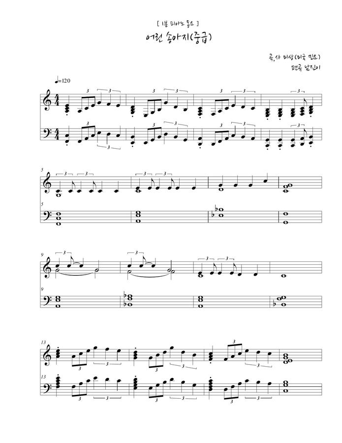 #어린이들을 위한 편곡 #[1분 피아노 동요] #어린 송아지(중급) #독주용 악보
