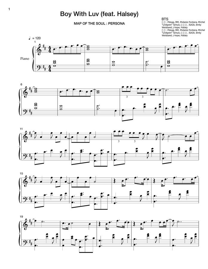 방탄소년단(BTS)의 신곡 '작은 것들을 위한 시' 악보를 제작했습니다.