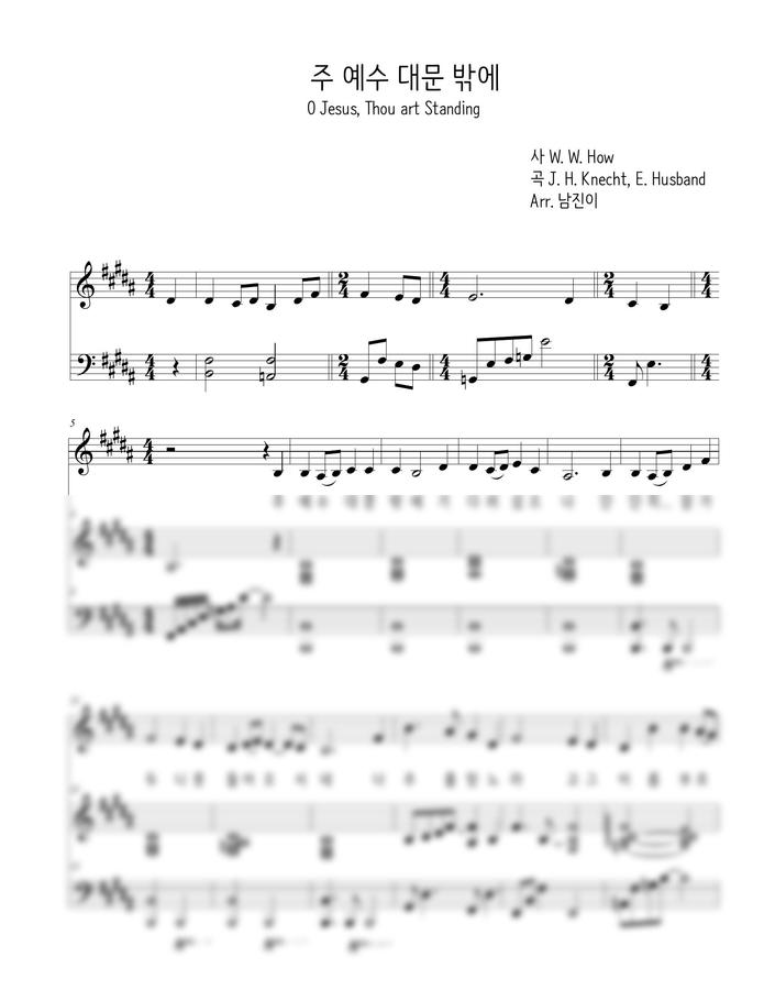 사랑하는 믿음의 선배 구원영 언니와 함께 광림교회 예배시간에 특송을 올려드리기 위해 편곡한 곡인 ‘주 예수 대문 밖에’를