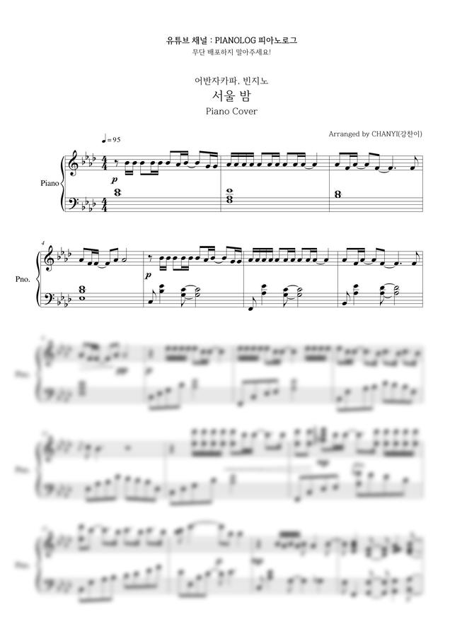 어반자카파의 서울 밤 피아노 커버 악보입니다.