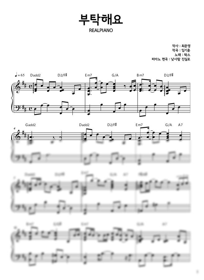 왁스의 명곡 [ 부탁해요 ] 피아노 악보입니다.