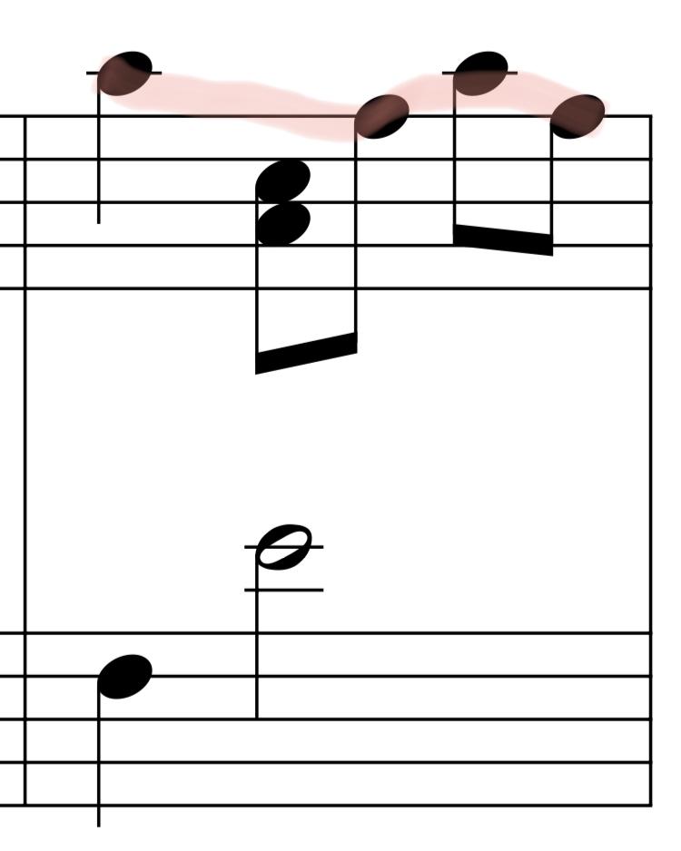 (아래 예시에는, 색칠한 부분이 멜로디입니다. '라-파 라파' , 그 사이의 화성은 작게!)