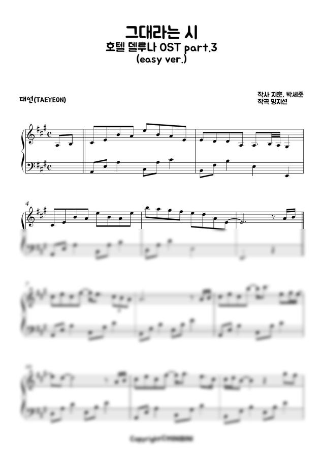 태연 (TAEYEON) - 그대라는 시 (쉬운악보, 호텔 델루나 OST) by MINIBINI