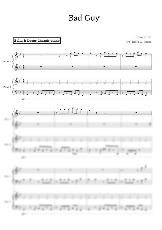 Billie Eilish - bad guy (4 hands) by 벨라앤루카스