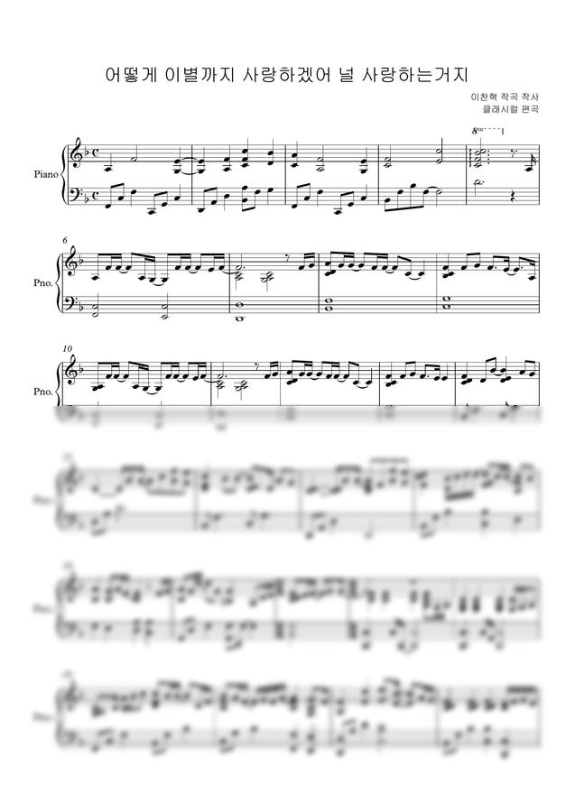 AKMU (악동뮤지션) - 어떻게 이별까지 사랑하겠어, 널 사랑하는 거지 (중급 악보) by 클래시컬