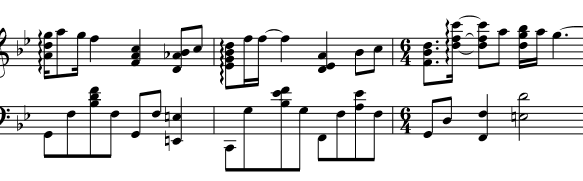 전체적으로 화음이 많습니다. 미리보기 참고해주세요. 글리산도(아르페지오)는 있으면 좋을 것 같은 부분만 우선 표기했는데 영상 참고하셔서 자유롭게 변형하셔도 좋을 듯 합니다!