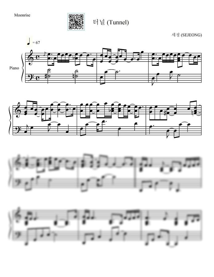 <세정 - 터널> 피아노 양손 악보입니다.