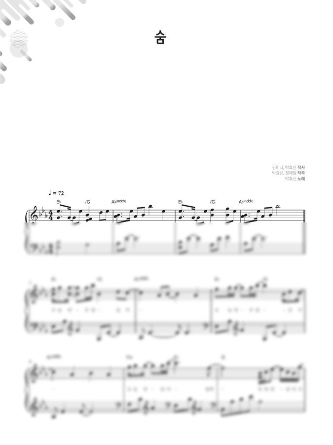 이번 악보는 박효신 - 숨 입니다.