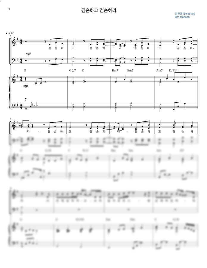 장원규 님의 겸손하고 겸손하라를 4부+피아노 악보로 만들어보았습니다