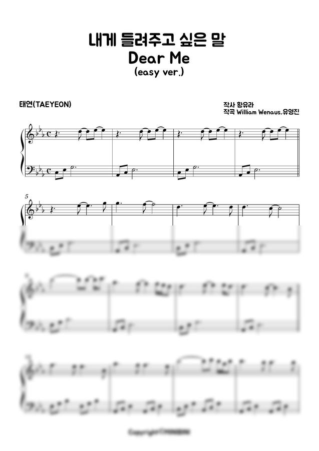 태연 (TAEYEON) - 내게 들려주고 싶은 말 (Dear Me) (쉬운 악보) by MINIBINI
