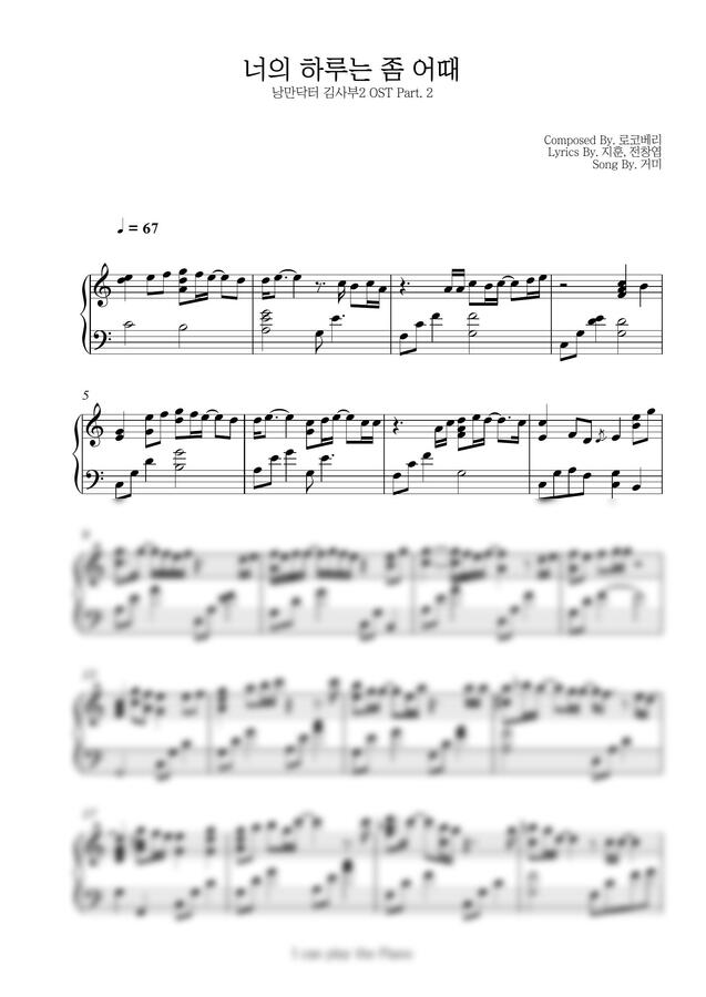거미 - 너의 하루는 좀 어때 (낭만닥터 김사부2 OST) (쉬운 키 버전) by I can play the Piano