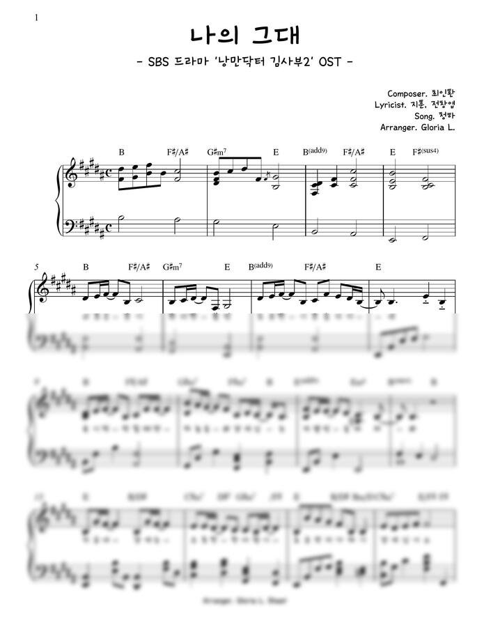 이번 악보는 드라마 낭만닥터 김사부2 OST 중 청하가 부른 나의 그대 입니다