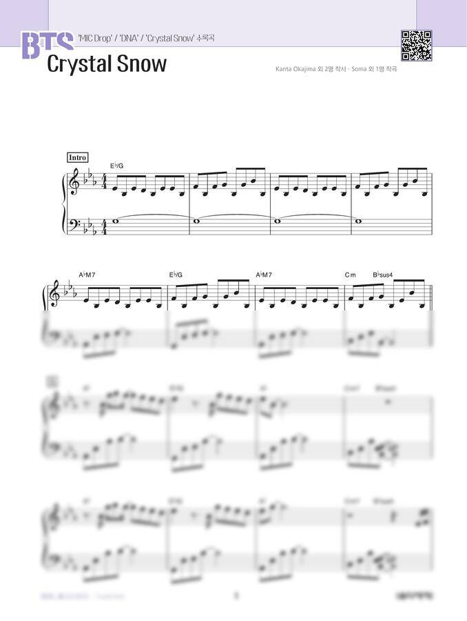 * 위 악보는 음악세계에서 출간된 <피아노 페스타 BTS 피아노 스코어>에 수록되어 있는 악보입니다.