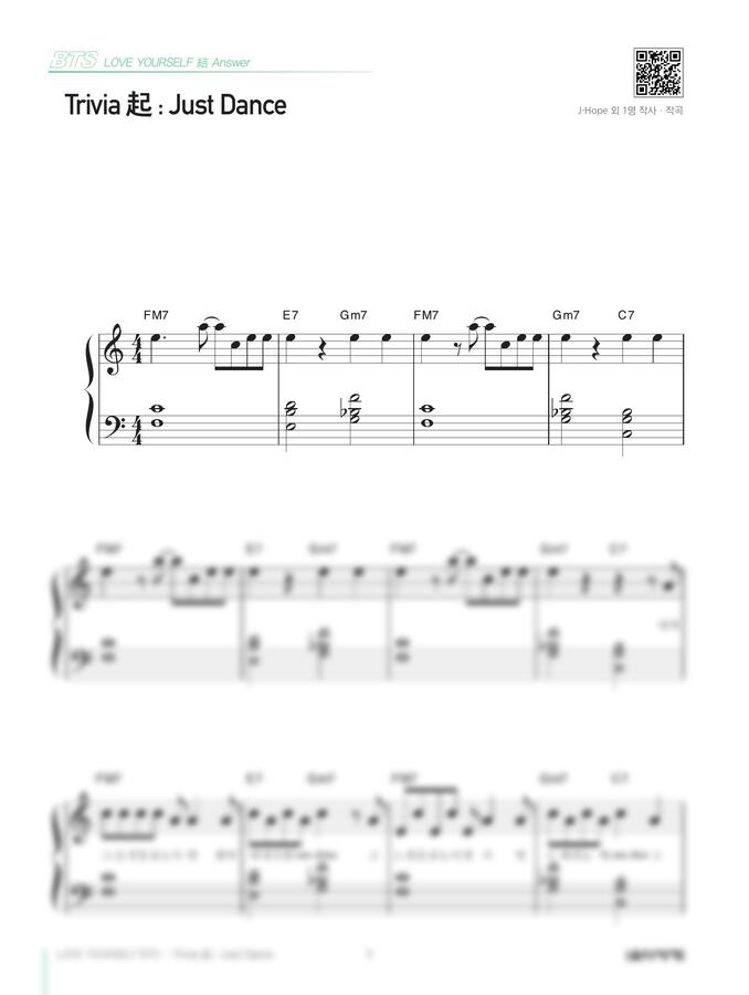 * 위 악보는 음악세계에서 출간된 <LOVE YOURSELF BTS 피아노 스코어 EASY>에 수록되어 있는 악보입니다.