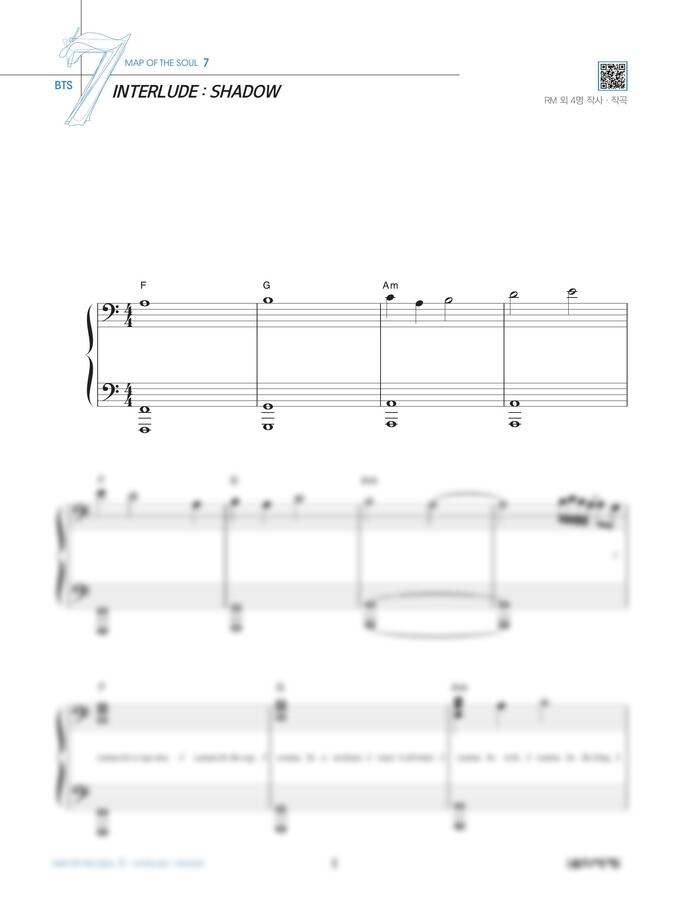 * 위 악보는 음악세계에서 출간된 <MAP OF THE SOUL 7 BTS 피아노 스코어>에 수록되어 있는 악보입니다.