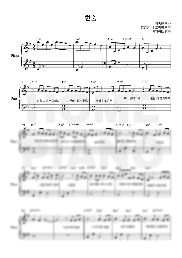 #이하이 #한숨 #한숨악보 #한숨피아노