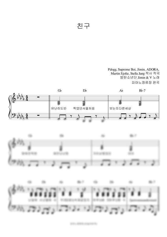 방탄소년단 (BTS) - 친구 (반주악보) by 피아노정류장