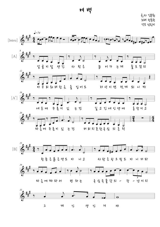 주옥같은 노래가 널리 알려지기를 바라는 마음으로 멜로디악보를 채보했습니다.