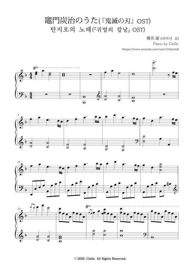 말씀드린대로 오늘 드디어! '카마도 탄지로의 노래' 쉬운 버전의 악보를 가져왔습니다! (짝짝짝)