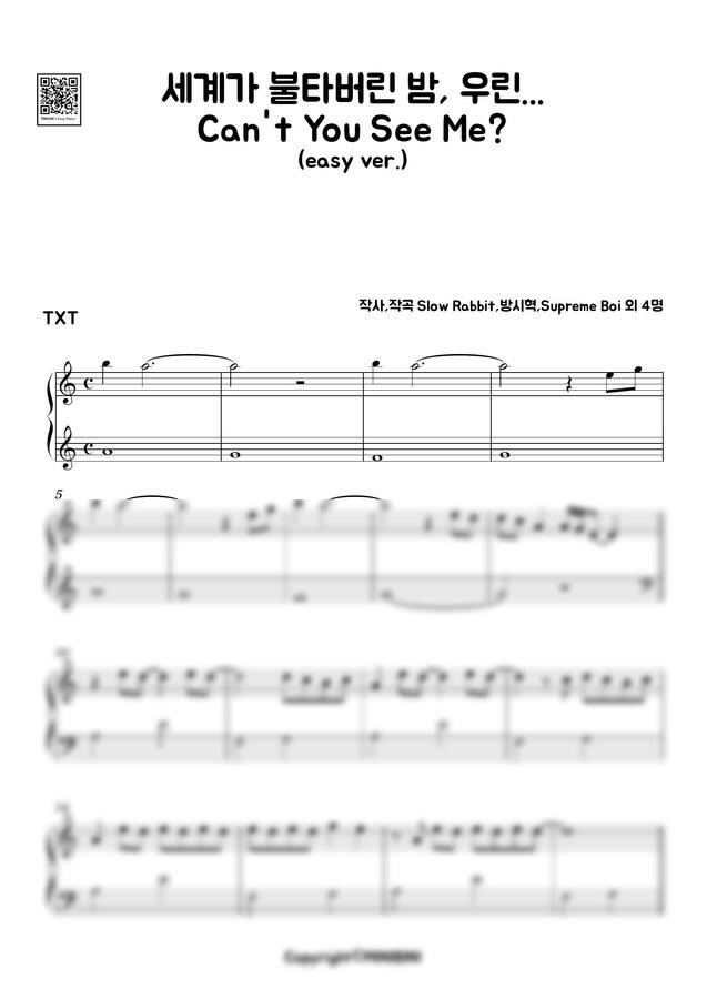 투모로우바이투게더 - 세계가 불타버린 밤, 우린... (Can't You See Me?) (쉬운 악보) by MINIBINI0