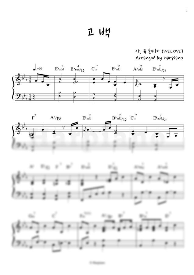 위러브의 송지혜님이 작곡, 작사한 고백이라는 곡입니다. Eb키이구요...