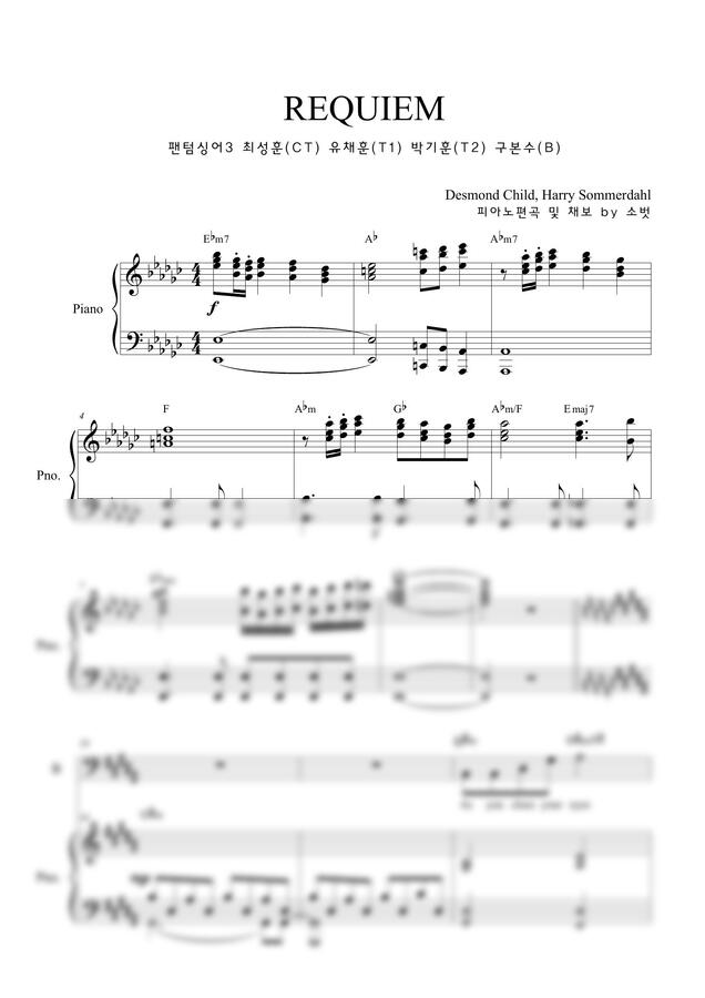 팬텀싱어3 4중창 첫 경연에서 선보인 Three Graces 의 Requiem 4중창 채보와 피아노 악보입니다.