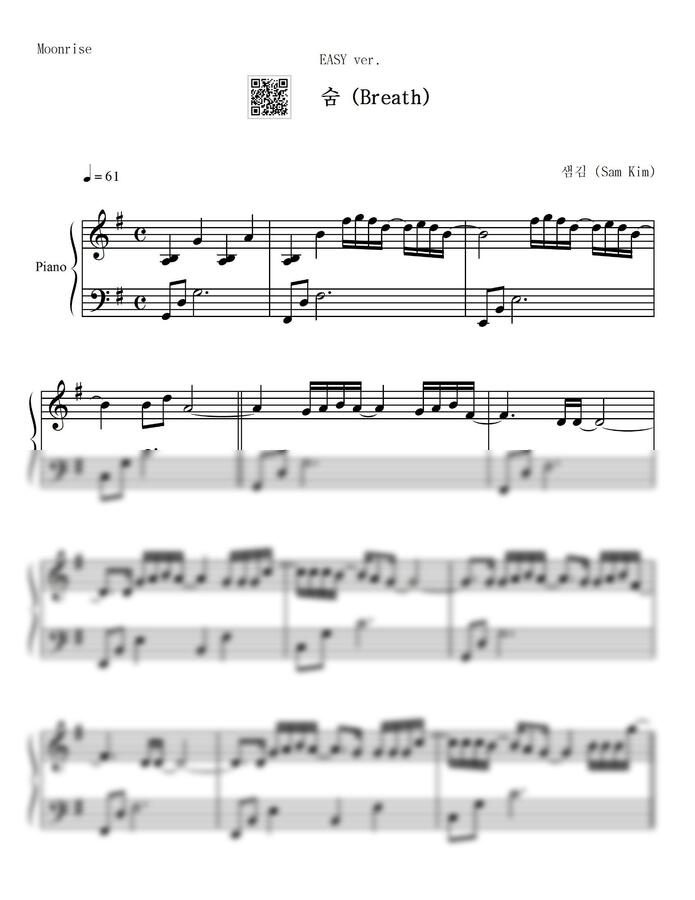 샘김 (Sam Kim) - 숨 (Breath) (사이코지만 괜찮아 OST, 쉬운 악보) by Moonrise1