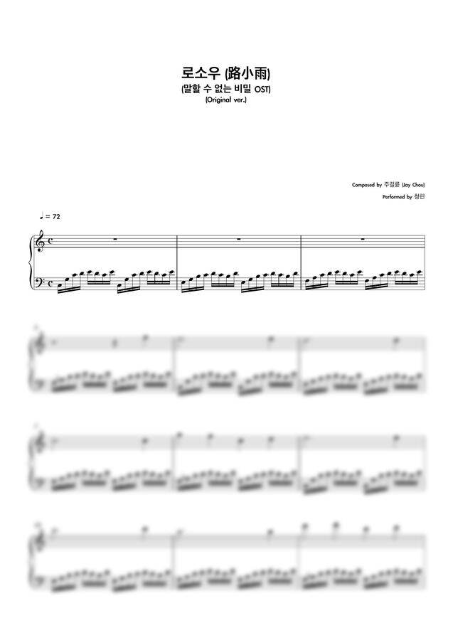말할 수 없는 비밀 OST - 로소우 (路小雨) (원곡 악보) by 청린